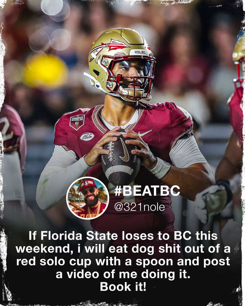 "If Florida State loses to BC this weekend, I will eat dog s--- out of a red solo cup with a spoon and post a video of me doing it. Book it!"